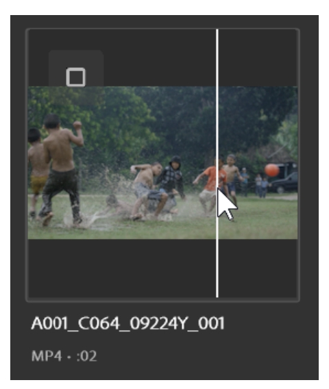 在搜索栏中输入文件名称可以搜索并找到文件,鼠标放在素材预览的视图上可以看到一条竖线,左右移动可以预览视频的内容,如图A03-5所示。