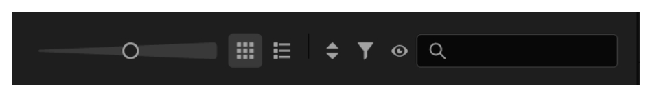 ◆ 【调整缩览图的大小】:可以通过移动滑块调整素材预览的视图大小。