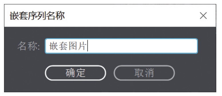 选择序列上的素材,右击,选择【嵌套】选项,在弹出的对话框中对嵌套序列进行命名,这里简单命名为“嵌套图片”,如图A03-28所示。