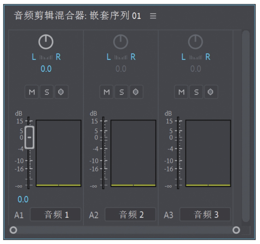 在【音频剪辑混合器】面板中可调整音频素材的声道、效果,还可以进行与音频录制相关操作,如图A04-13所示。