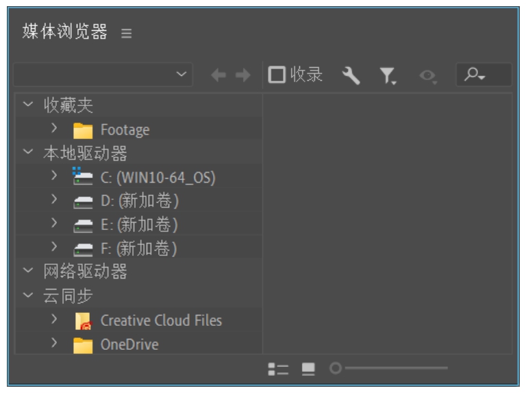 在该面板中可以直接浏览硬盘中的媒体相关文件,便于用户查找并导入素材,如图A04-6所示。