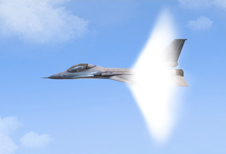 飞机以超声速飞行时,其前方会产生持续稳定的压力波。当飞机朝向地面观察者飞来时,观察者不会听到声音;当飞机飞过并开始远离观察者时,所产生的声波向地面传来,波间的压力差会形成可听见的效应,也就是声爆。