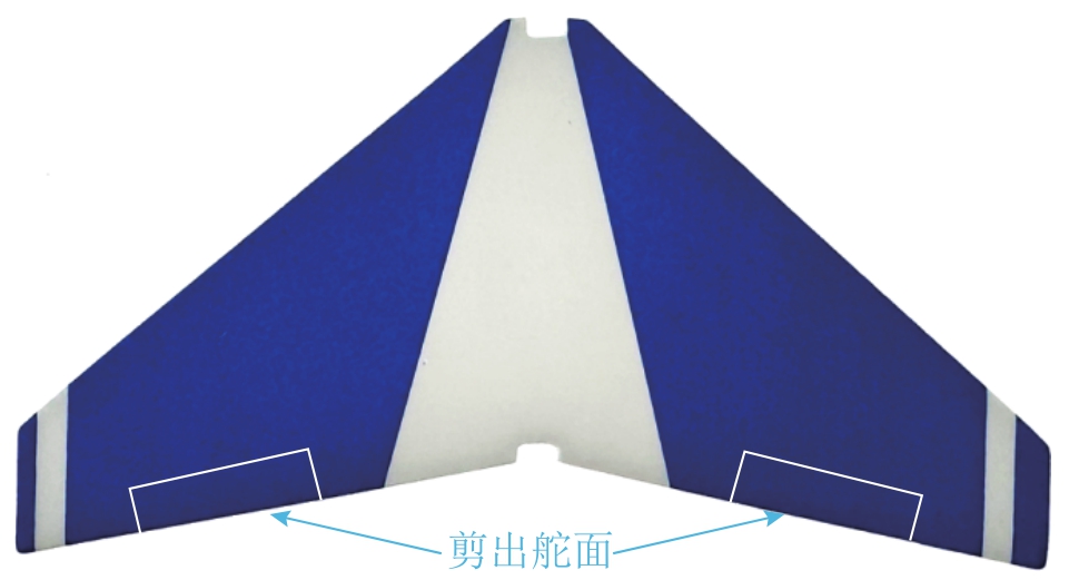 真正的歼10战斗机的整个鸭翼面都是可以偏转的,鸭翼可以起到升降舵的作用,若偏转鸭翼使前缘上升、后缘下降,可使战斗机向上飞行。利用剪刀在鸭翼左右侧的后缘区域各剪出一个舵面,如图2.2.8所示,以此使鸭翼控制模型的升降。