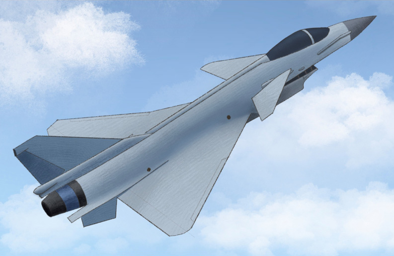 歼10战斗机是我国自主研发的、超声速的、全天候飞行的空中战斗机,如图2.2.1所示。战斗机采用单发的大推力涡扇发动机,机翼采用鸭翼气动布局。所谓鸭翼是指将水平尾翼放在主机翼前面的一种设计,鸭翼又叫前翼。这种设计的优点是可使主翼上方产生涡流,可提高失速迎角。歼10战斗机的最大飞行高度为17000m,每小时最快可飞行2695km,最大飞行速度为748.6m/s,速度超过马赫数2,约为声速的两倍。