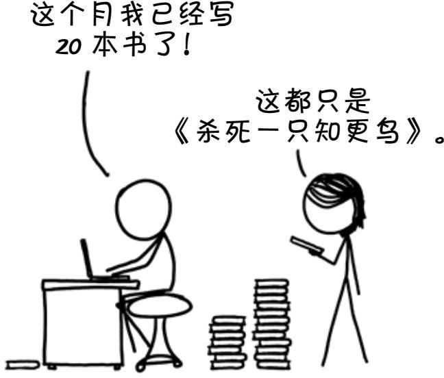 可以合理假设,历史书的作者的写作速度也大致相同。你大概会说,在键盘上打字的速度至少是手写的2倍,但是打字速度并不是作家们的“瓶颈”,毕竟以70个单词每分钟的打字速度打完《杀死一只知更鸟》,应该只需要24小时。