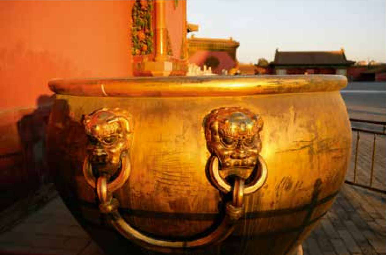 乾清门前的铜鎏金水缸