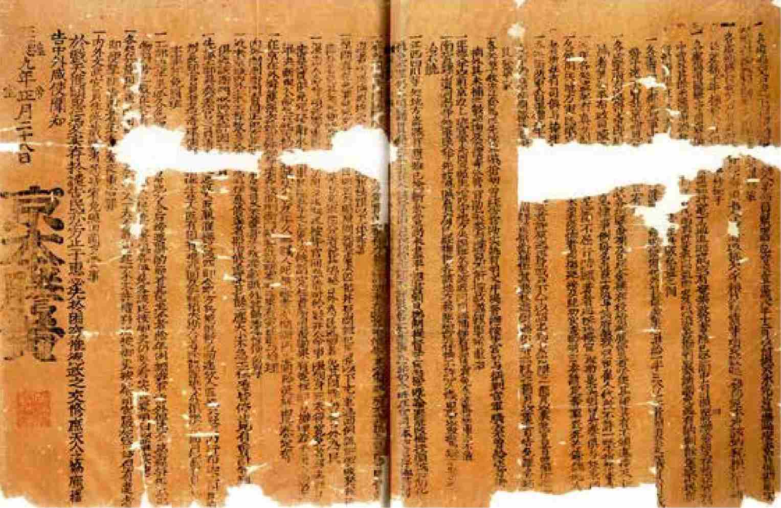 真是一个荒唐透顶的皇帝。对于这次火灾,《明史》仅有“庚辰,乾清宫灾”六个字。《明武宗实录》则有较多记载,例如皇帝认识到这场火灾的严重性,视朝时换上了浅淡色服装,撤去了宝座,让文武群臣“直言无隐”,也采取了一些措施。正德帝还为乾清宫火灾发布过《罪己诏》。1972年,江苏无锡前洲镇挖出的一个明代棺材里,有这个《罪己诏》的“京本誊黄”,即地方官府照京本而翻刻的诏书,成为中国现存的《罪己诏》的唯一实物。