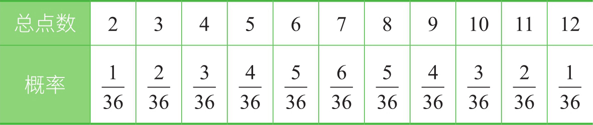 影响策略的一个因素是抛掷两个骰子的可能结果。如上所述,7是概率最大的总点数(因为它可以由1+6、2+5、3+4、4+3、5+2和6+1组成);表2-1中列出了其他总点数的概率: