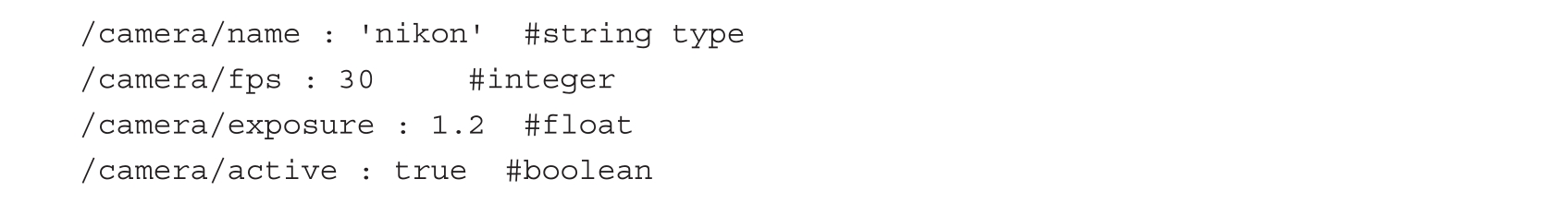 我们还可以在参数服务器上存储字典。如果参数的数量很大,我们可以使用YAML文件来保存它们。以下是YAML文件参数定义的示例: