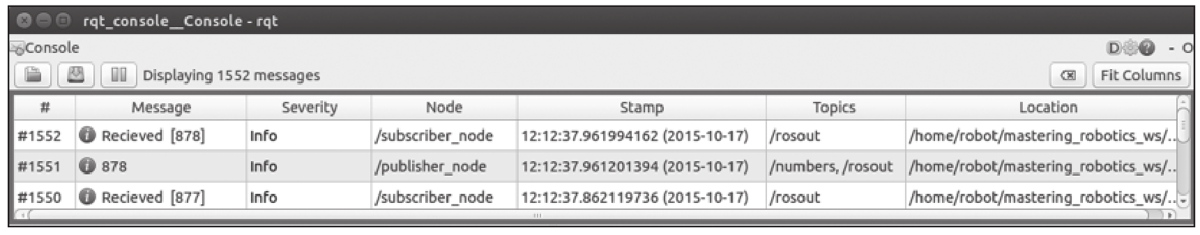 图2.9 用rqt_console工具进行日志记录