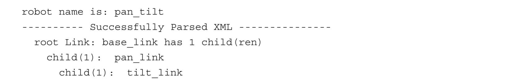 这个命令将生成两个文件:pan_tilt.gv和pan_tilt.pdf。我们可以使用以下命令来查看此机器人的结构: