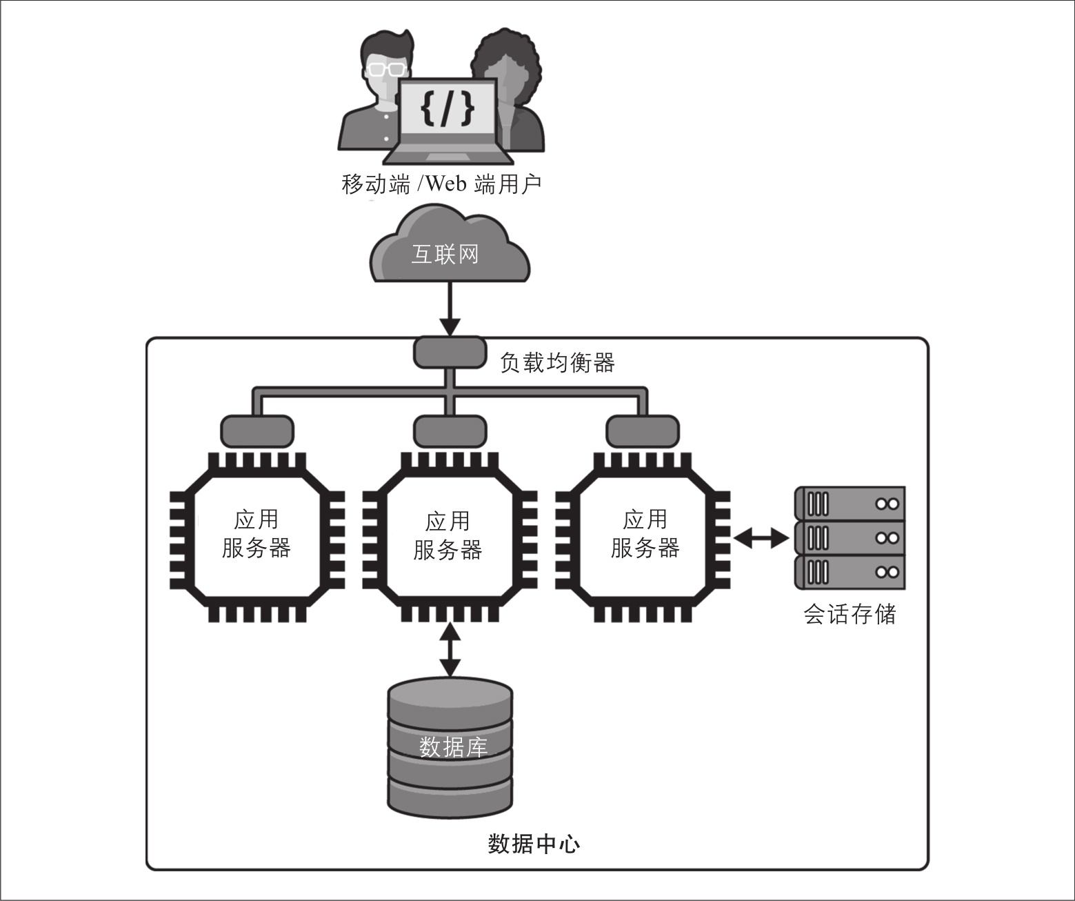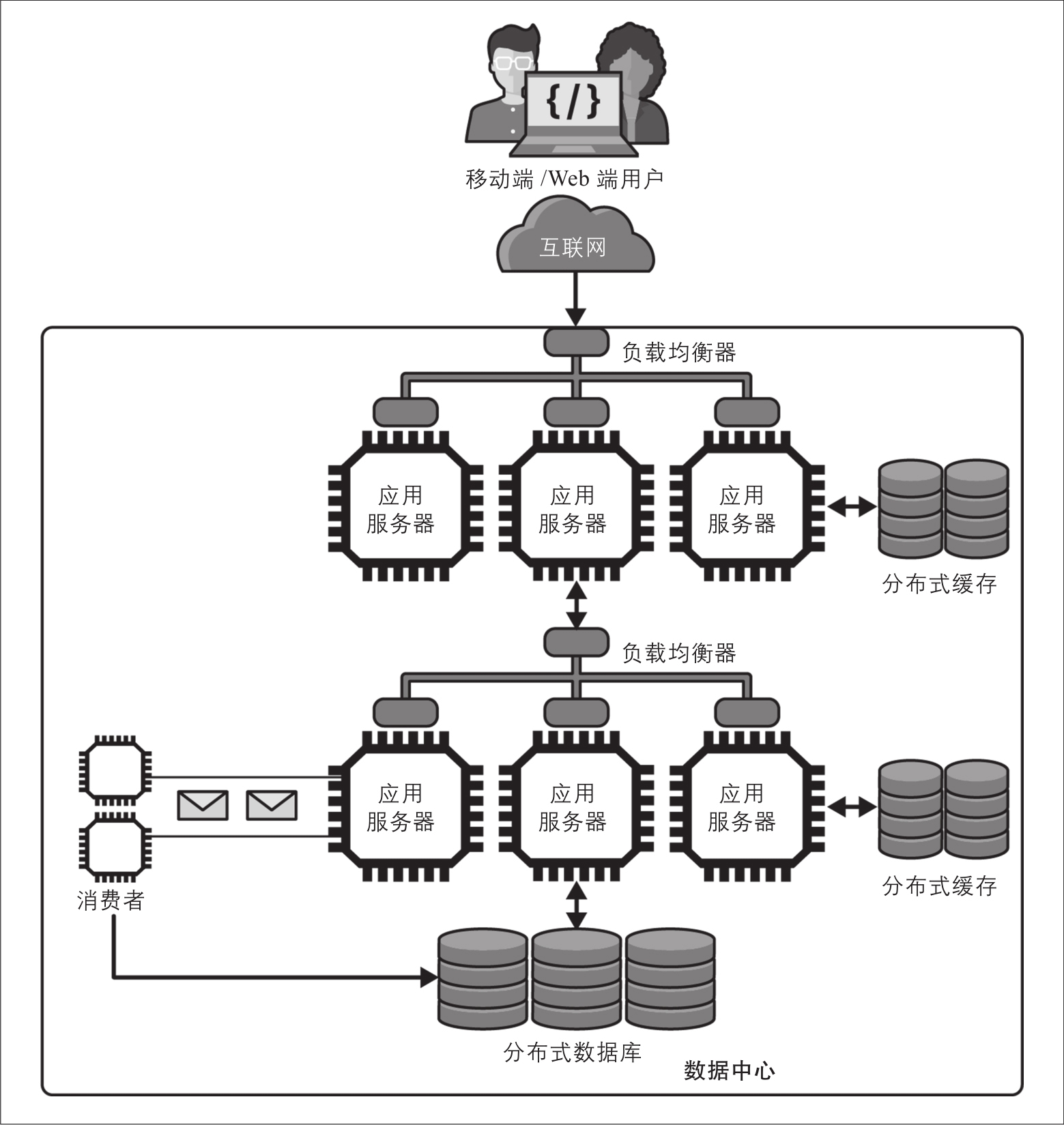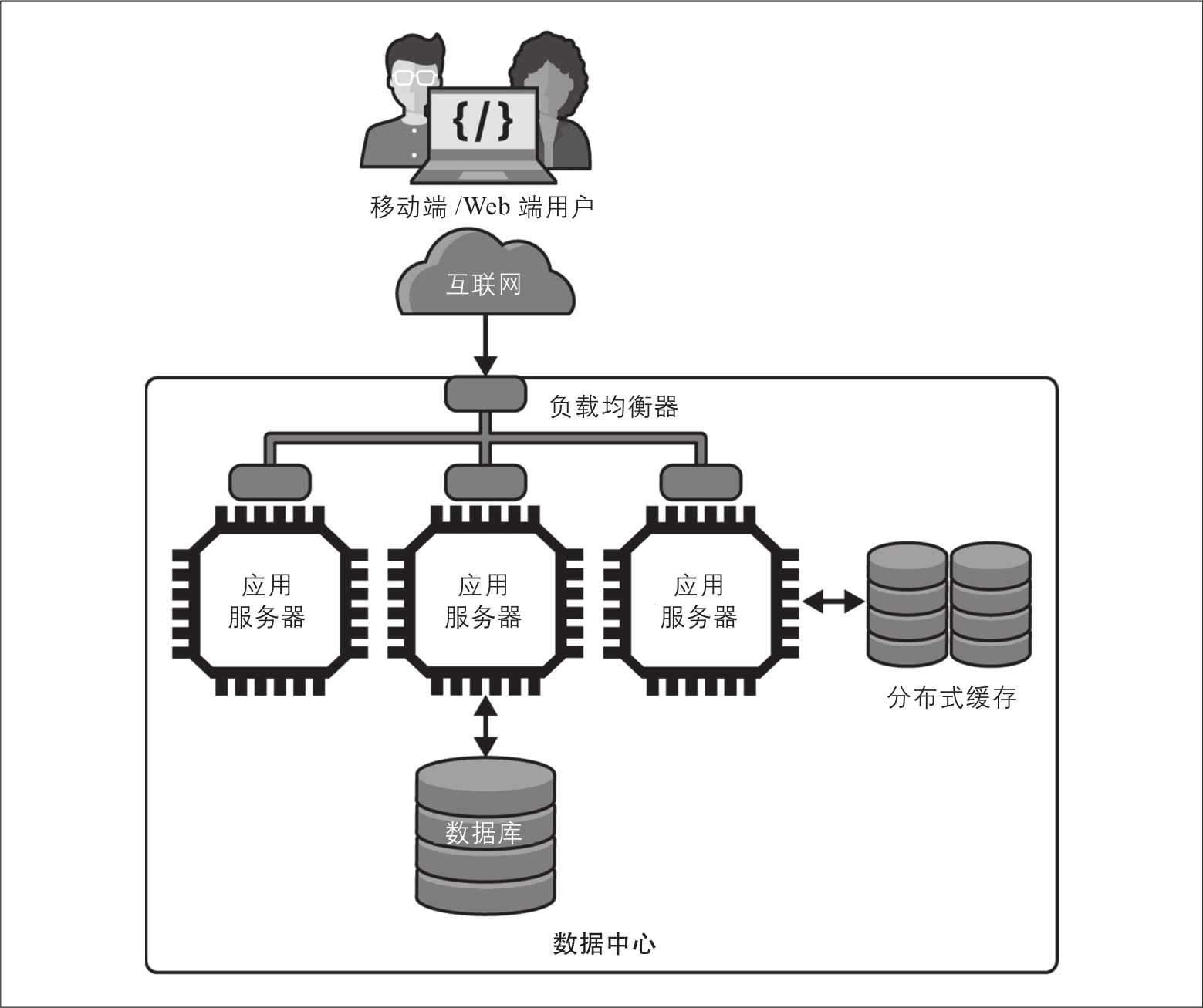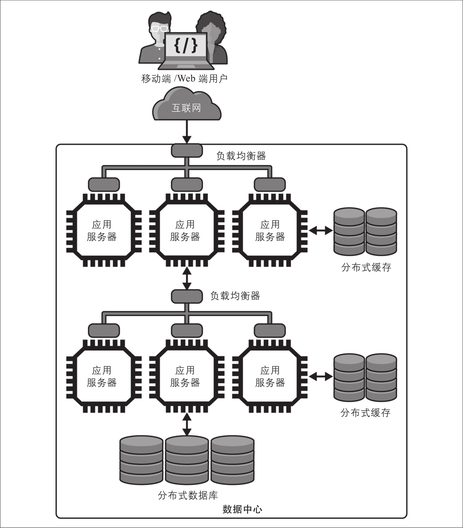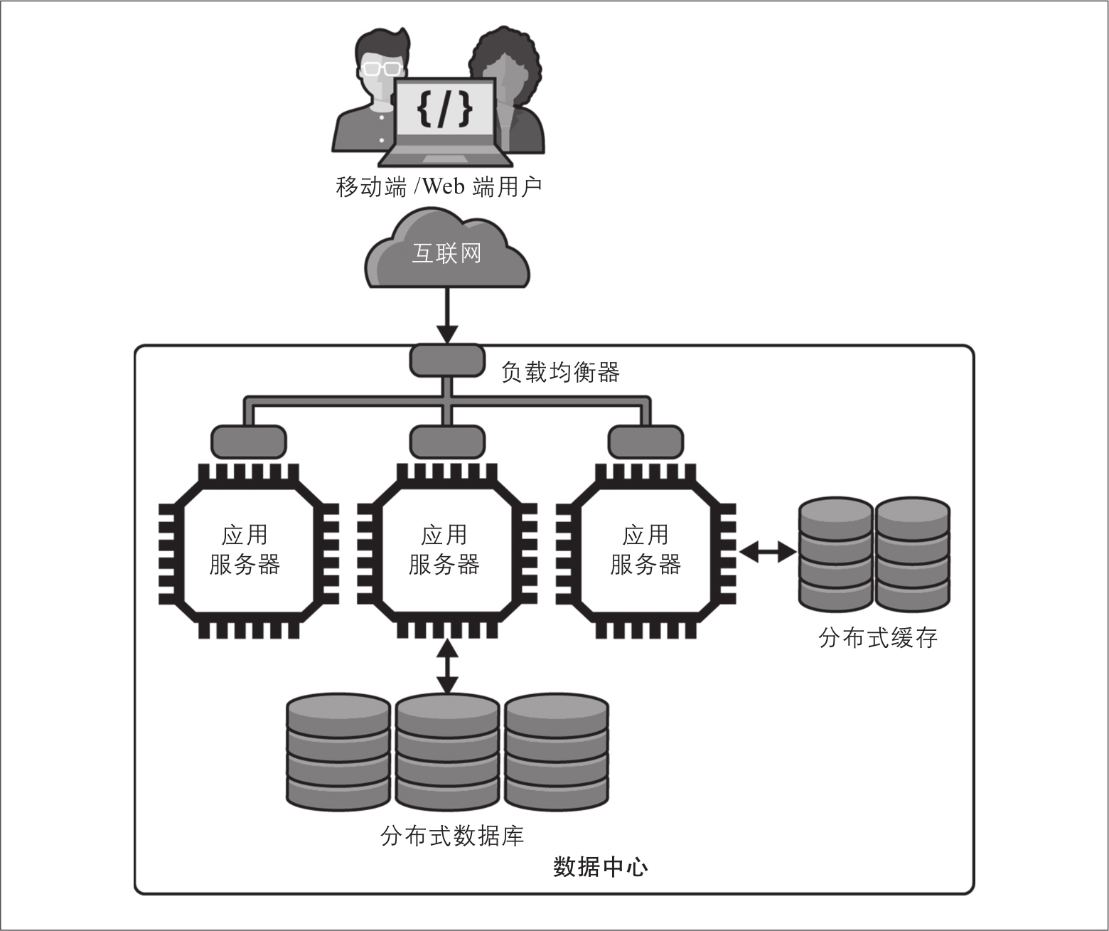 要成功扩展应用程序,你的设计中需要具备两个基本元素。如图2-2所示,它们分别是: