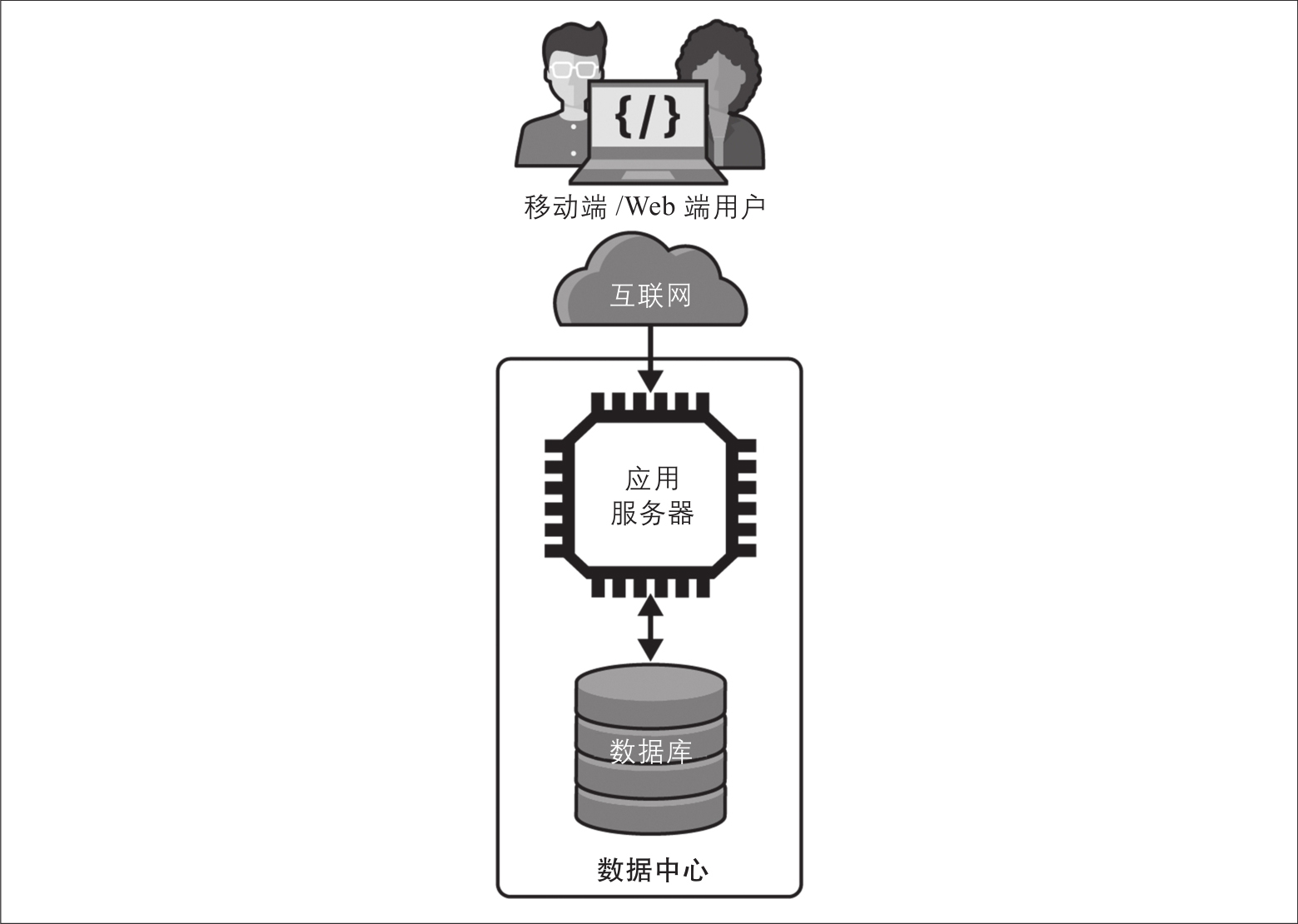 许多系统在概念上看起来与上述描述一致。应用服务代码利用服务器执行环境,同时处理来自多个用户的多个请求。应用服务器技术有无数种——例如,Java EE和Java的Spring框架,Python的Flask( https://oreil.ly/8FYu5 )——它们在上述场景中被广泛使用。
