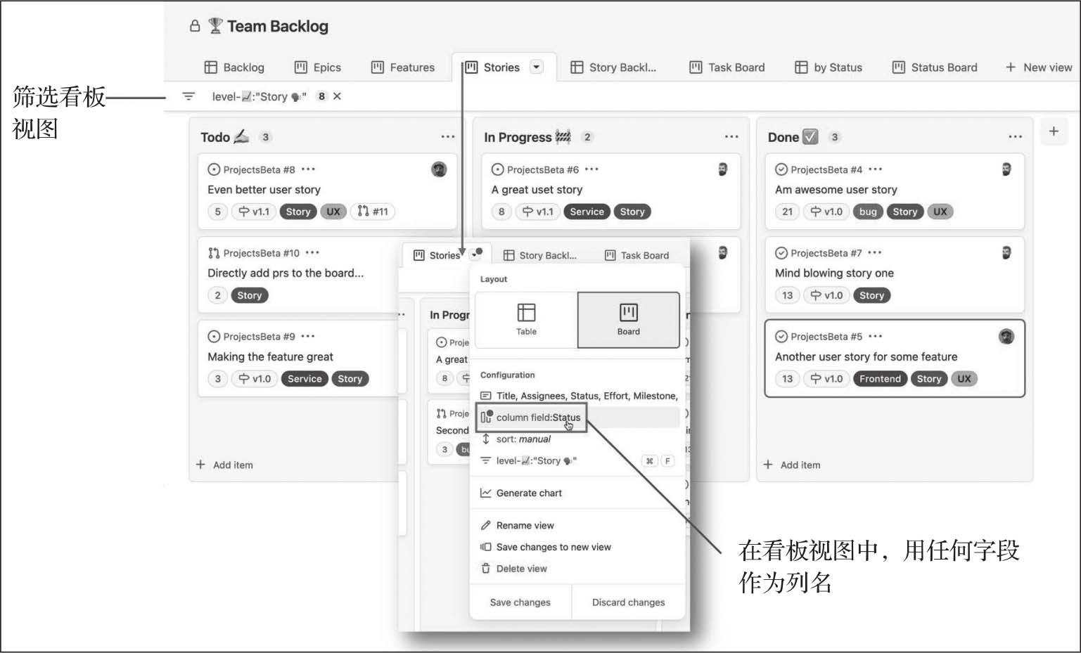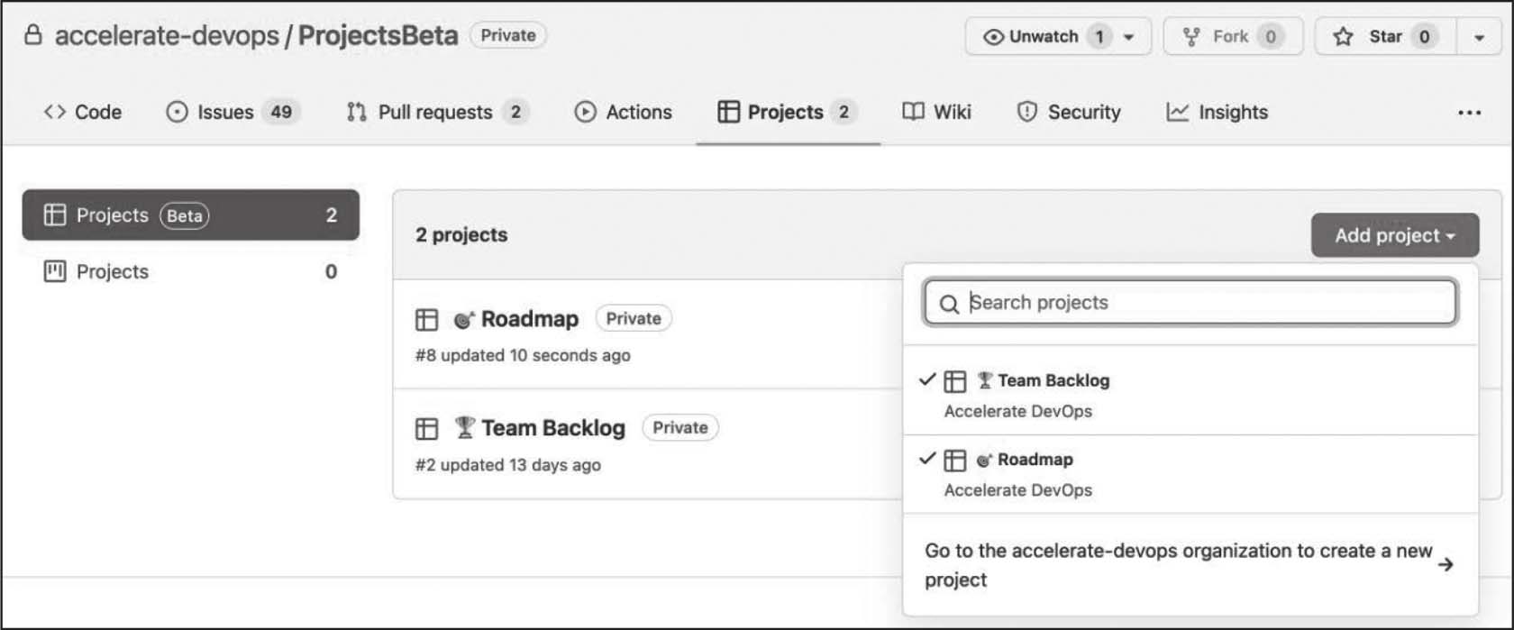 在撰写本书时,Git项目正在进行彻底的改造。新部分目前被称为GitHub Projects(beta)或New GitHub Issues,当准备就绪时将取代GitHub Projects。目前还不确定最终名称是什么。