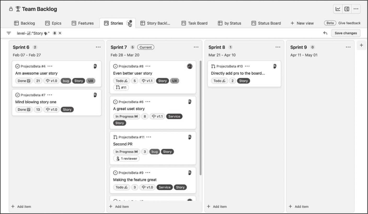GitHub Projects是管理工作并根据需求进行调整的非常灵活的解决方案。要了解有关GitHub Projects的更多信息,请参见https://docs.github.com/en/issues/trying-out-the-new-projects-experience/about-projects。
