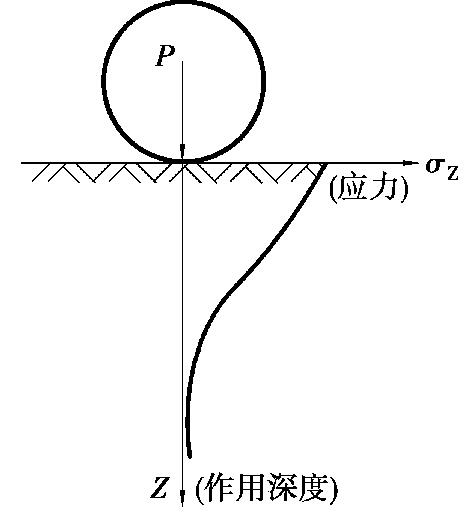 土在压实功的作用下,其应力随深度增加而逐渐减小,如图1.68 所示,其影响深度与压实机械、土的性质和含水量等有关。铺土厚度应小于压实机械压土时的作用深度,但其中还有最优土层厚度的问题。铺得过厚,要压很多遍才能达到规定的密实度;铺得过薄,则也要增加机械的总压实遍数。最优的铺土厚度应能使土方压实而机械的功耗费最少,可按照表1.7 选用。