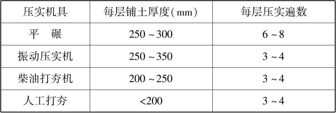 表1.7 每层铺土厚度与压实遍数