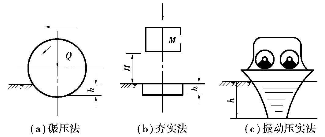 填土压实方法一般有碾压法、夯实法和振动压实法,如图1.63 所示。