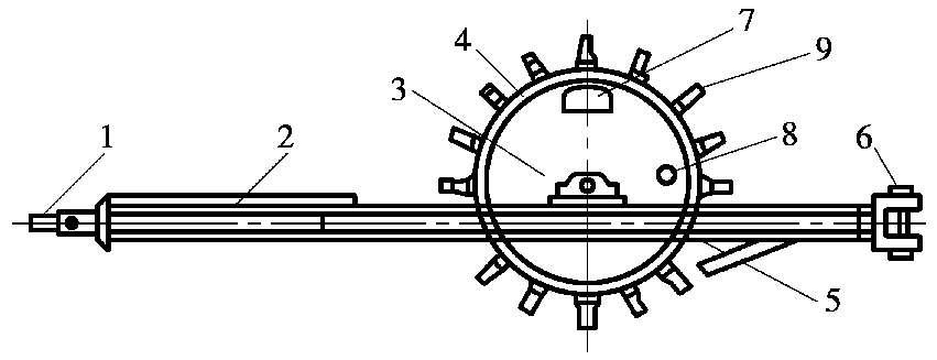 5—铲刀;6—后拉头;7—装砂口;8—水口;9—羊碾头
