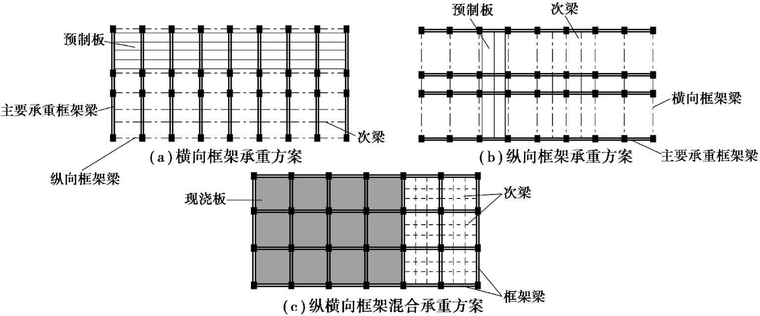 图2.16 框架结构的三种承重方案