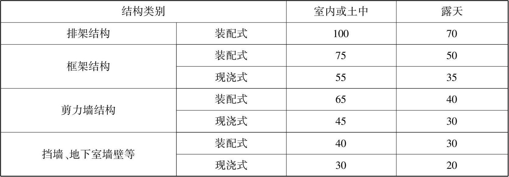 表2.5 钢筋混凝土结构伸缩缝最大间距