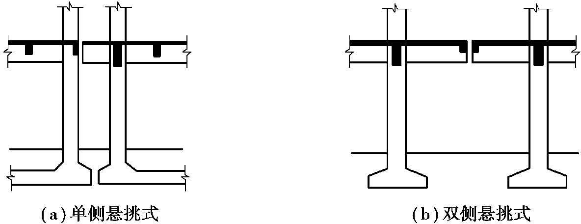 沉降缝的设置主要与基础承受的荷载及场地的地质条件有关。当房屋结构各部分的高度或质量相差悬殊,或地基土的物理力学指标相差较大时,为避免不均匀沉降过大而引起的开裂、破坏,可设置沉降缝。设置沉降缝时上部结构和基础均应断开,沉降缝的宽度不宜小于50mm。结构设计可通过梁、板悬挑的方式满足框架柱基础脱开的要求,如图2.17所示。