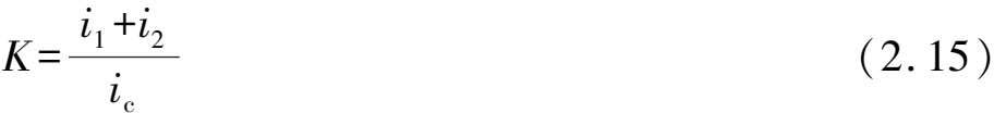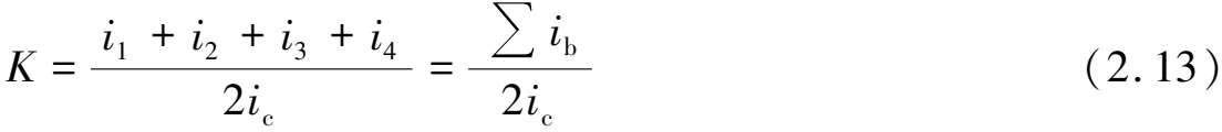 式中 K ——梁柱线刚度比值,按式(2.13)进行计算。