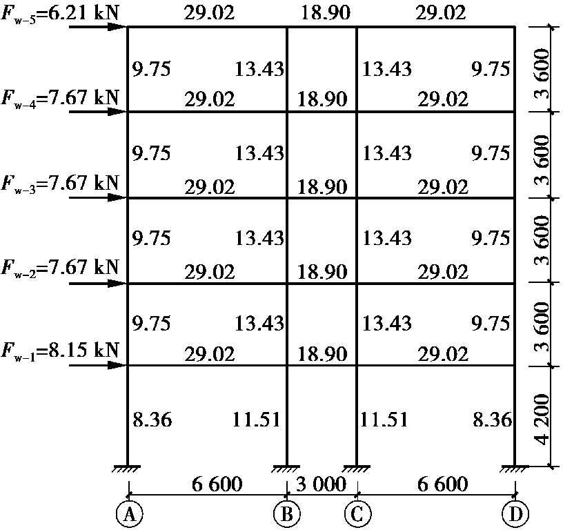 ④计算柱端弯矩。结合第①、③步的结果,即可得到柱端弯矩。