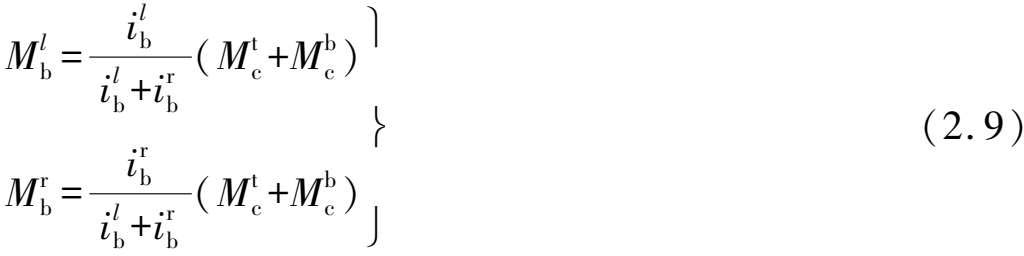 由节点弯矩平衡条件求出,然后可近似按节点左、右梁的线刚度对