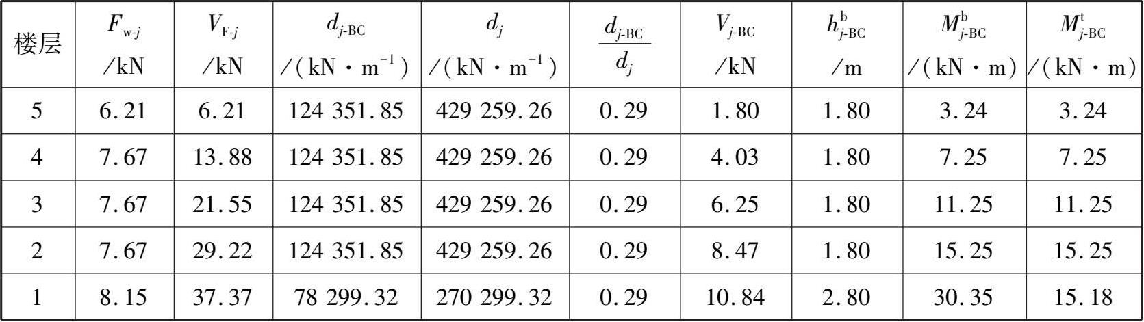 ③计算各楼层的层间剪力 V F j [式(2.3)],并将 V F j 分配给本楼层各柱[式(2.7)或式(2.8)]。
