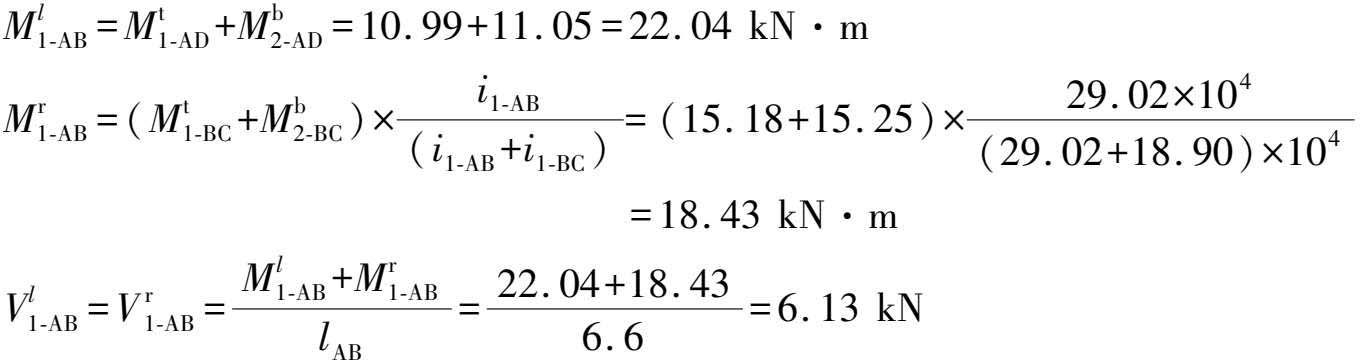 以第1层Ⓐ~Ⓑ轴线之间的框架梁为例,框架梁的端部弯矩、剪力的计算方法如下: