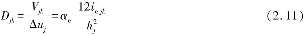 由于第 j 层各柱具有相同的层间位移Δ u j (即忽略梁的轴向变形),对于第 j 层任意第 k 根柱,根据抗侧刚度 d 的定义可以写出: