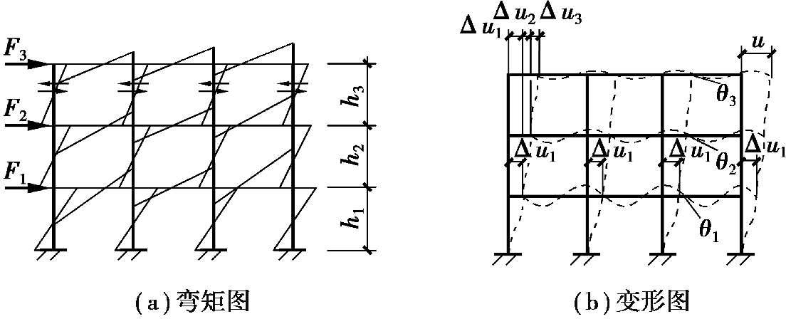 各楼层的层间位移Δ u j 之和即为框架顶点的总水平侧移 u 。