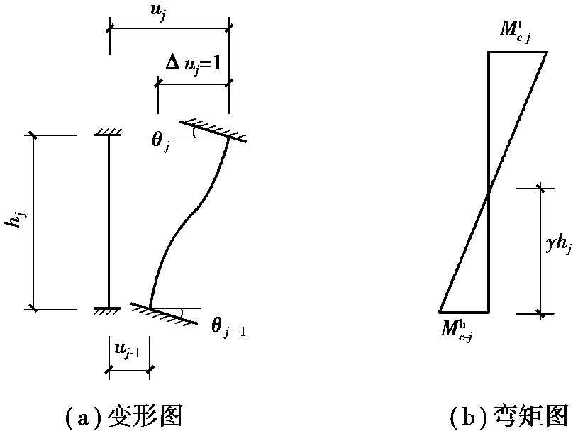 由假定②可知,在水平力作用下,柱上、下端不发生角位移,仅发生楼层水平位移Δ u j 。