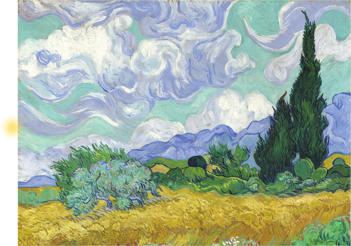 《麦田与柏树》,文森特·威廉·梵高,1889