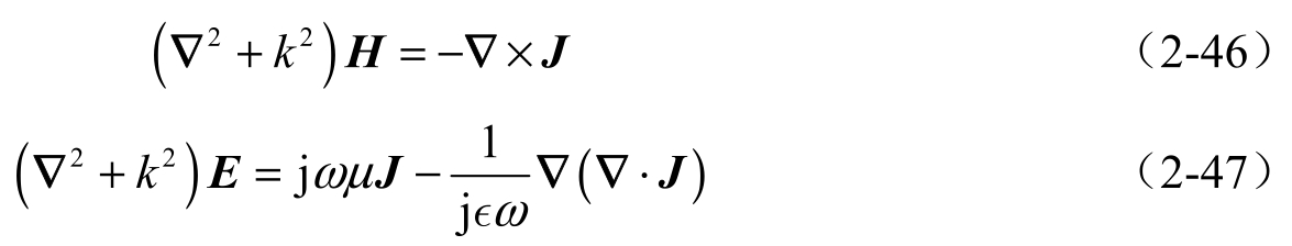 在推导过程中,我们利用了时谐电荷守恒定律的表达式。对于只有磁荷存在时的波动方程可利用对偶关系获得,本节不再详述。