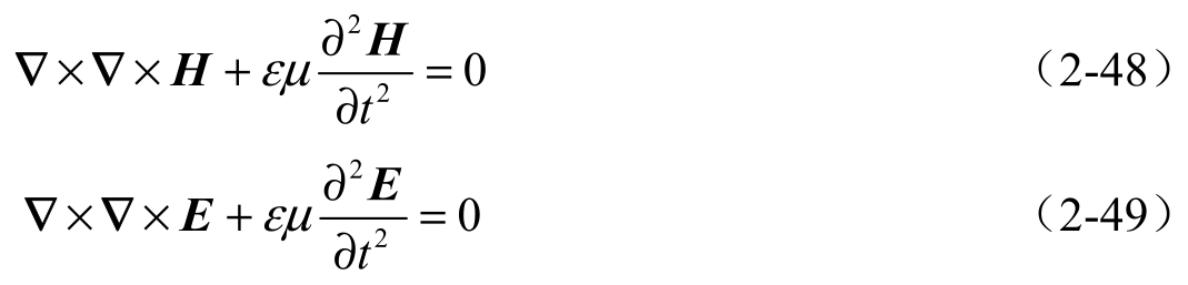 在无源区, J = 0, ρ= 0,电磁场的波动方程变为
