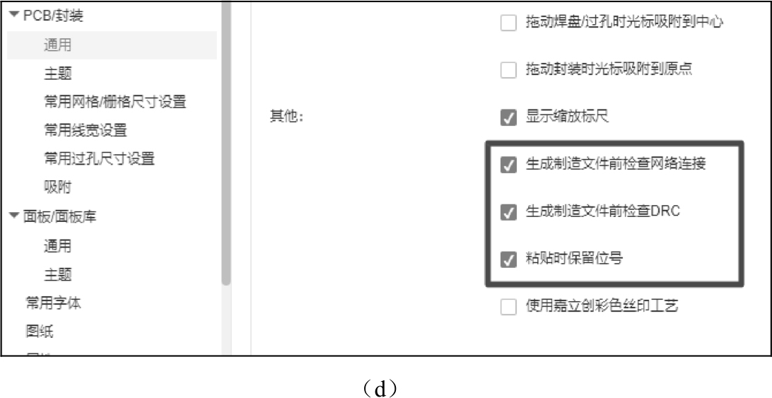 ①生成制造文件前检查网络连接:导出Gerber文件的时候系统会检查PCB网络的连接是否完成,推荐勾选。