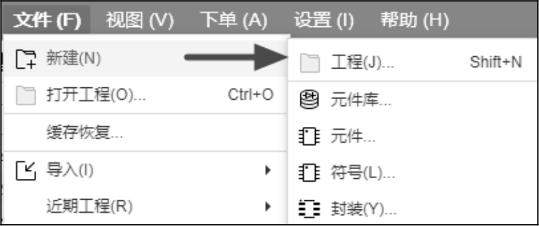 (1)打开软件,单击“文件—新建—工程”,如图2-1所示。