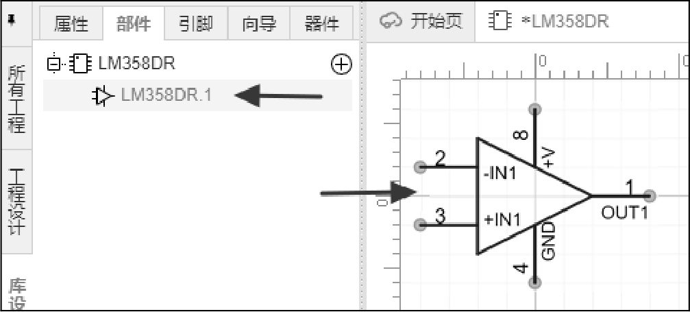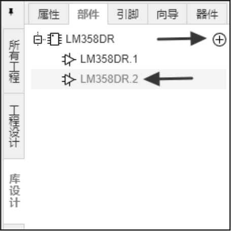 子部件是元件的一个部分,如果一个元件被分为多部件,则该元件至少有两个部件,元件的引脚会被分配到不同的部件中。下面以常见的多部件元件“运算放大器”为例,来讲述一下多部件元件的创建方法。