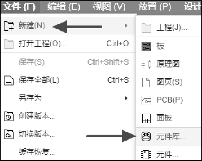 (1)单击“文件—新建—元件库”,创建一个新的元件库,如图3-26所示。