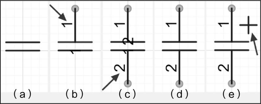 (6)如果此电容要区分极性,那么可以根据实际的引脚情况,单击“放置—折线”或单击“放置—文本”来绘制极性标识,如图3-28(e)所示。