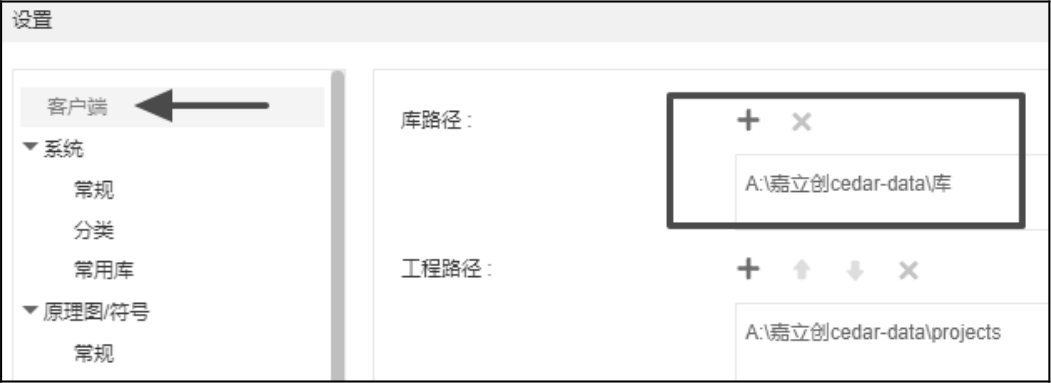 (1)将库文件通过单击“设置—客户端—库路径”放置到指定的库文件存储路径(此处,软件需要在全离线\半离线模式下才能显示“库路径”),如图3-44所示。