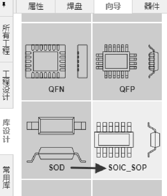 (2)在左侧栏中单击“库设计—向导”,单击选择“SOIC_SOP”类型,如图4-32所示。