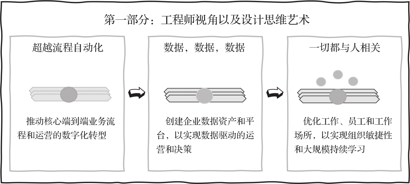 • 第一,独立于技术、行业或经济形势(这些因素在所有研究和经验中都存在显著差异),设计基于技术的解决方案的关键出发点,是对人们需求的深度理解和不懈关注。例如,从客户或员工的角度来理解何处有分歧点,而不是从技术的角度来理解,这一点是极重要的,但往往被忽视。