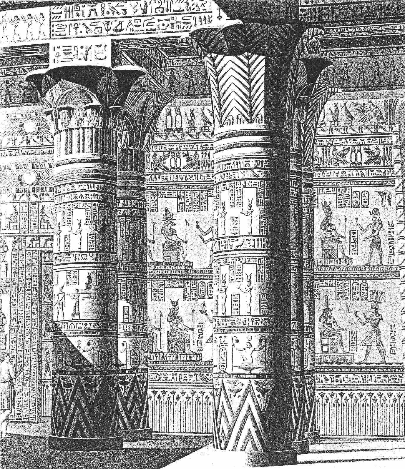 图2-9 古埃及象形文字之美:菲莱岛“重建的”伊西斯神庙门廊细节