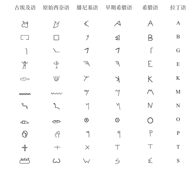 图2-12 古埃及象形文字以不同形态存在于其他字母语言中