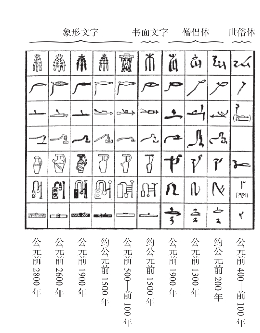 图2-8 3种古埃及文字符号及其发展举例