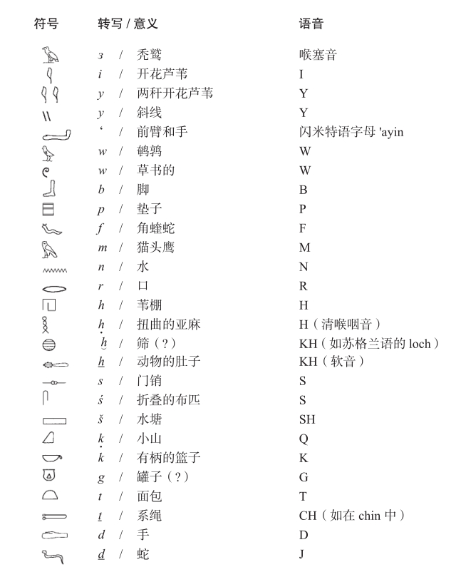 图2-5 单辅音符号(古埃及语的“辅音字母表”)
