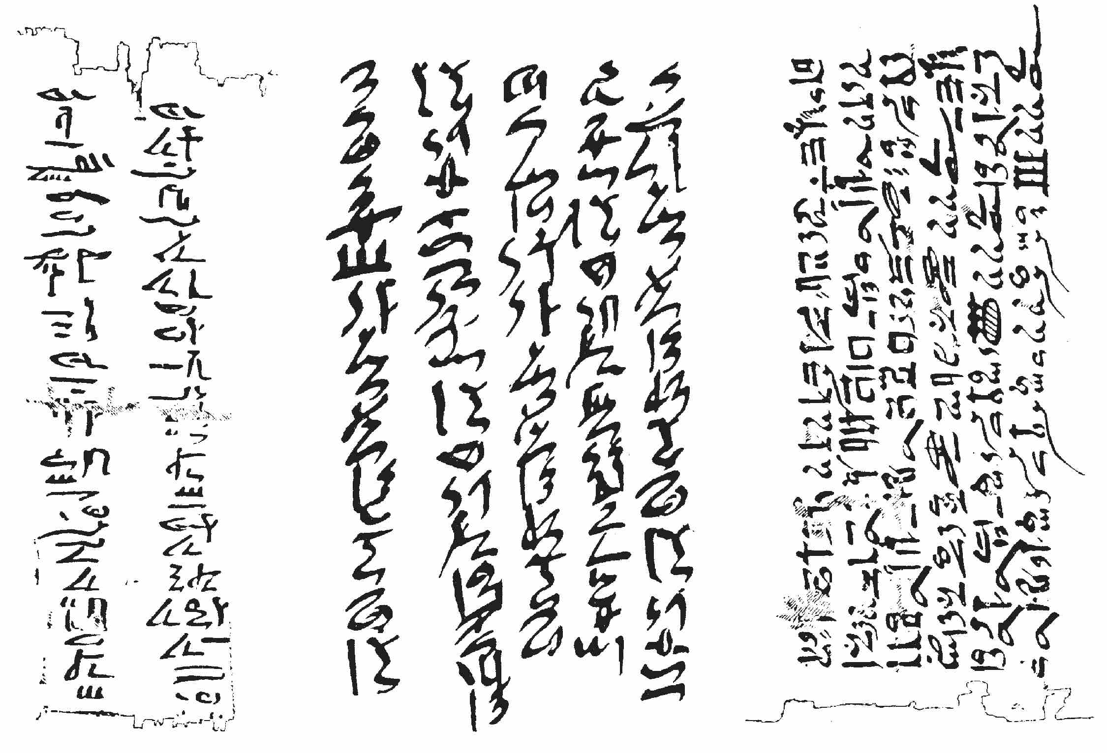 图2-10 埃及僧侣文字的三个时期:(左)第六王朝时期(公元前2315―前2190年);(中)中王国时期(公元前2040―前1710年);(右)第十七王朝时期(公元前1580―前1555年)